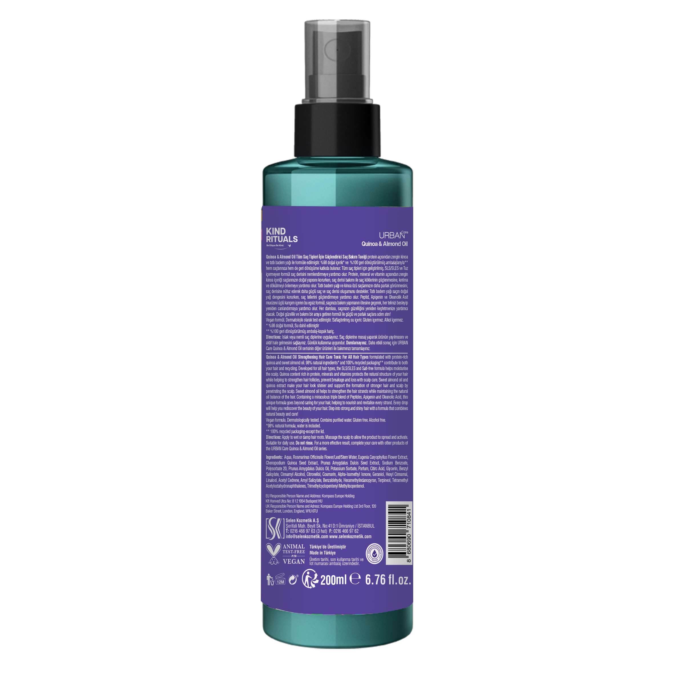 URBAN Care Kind Rituals Kinoa & Almond Oil Güçlendirici Saç Bakım Toniği %98 Doğal, protein, mineral ve vitamin açısından zengin ve süper besin olarak bilinen kinoa içeriği sayesinde saçlarınızın doğal yapısını korurken, saç tellerini güçlendirmeye, kırılma ve dökülmeyi önlemeye yardımcı olur.