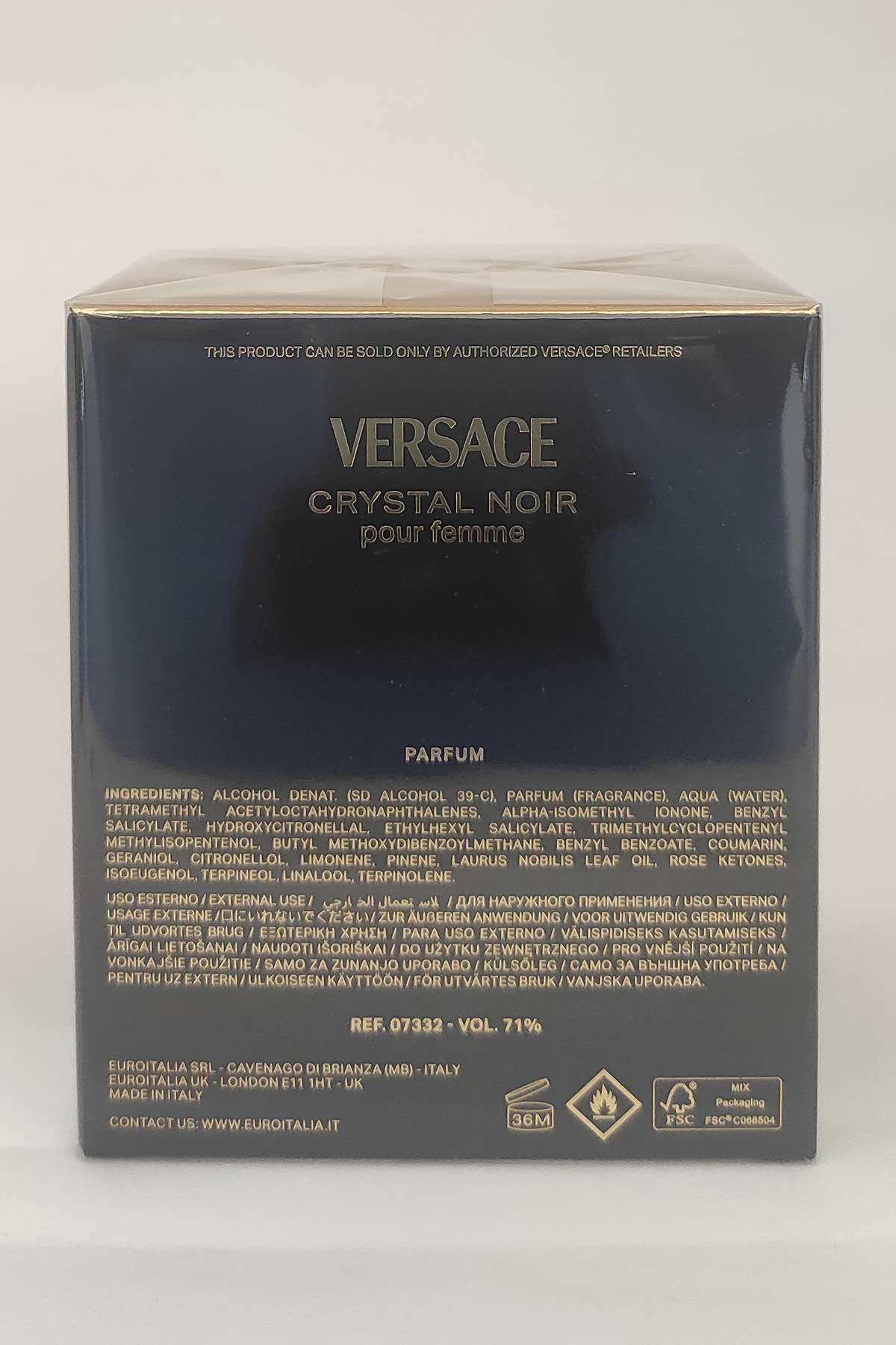 Parfum konsantrasyonuna sahip olan Versace Crystal Noir, ciltte 3 ila 6 saat arasında kalıcılık gösterir. Alt notalardaki amber ve vanilya, parfümün kalıcılığını artırarak gün boyu etkisini sürdürmesini sağlar.