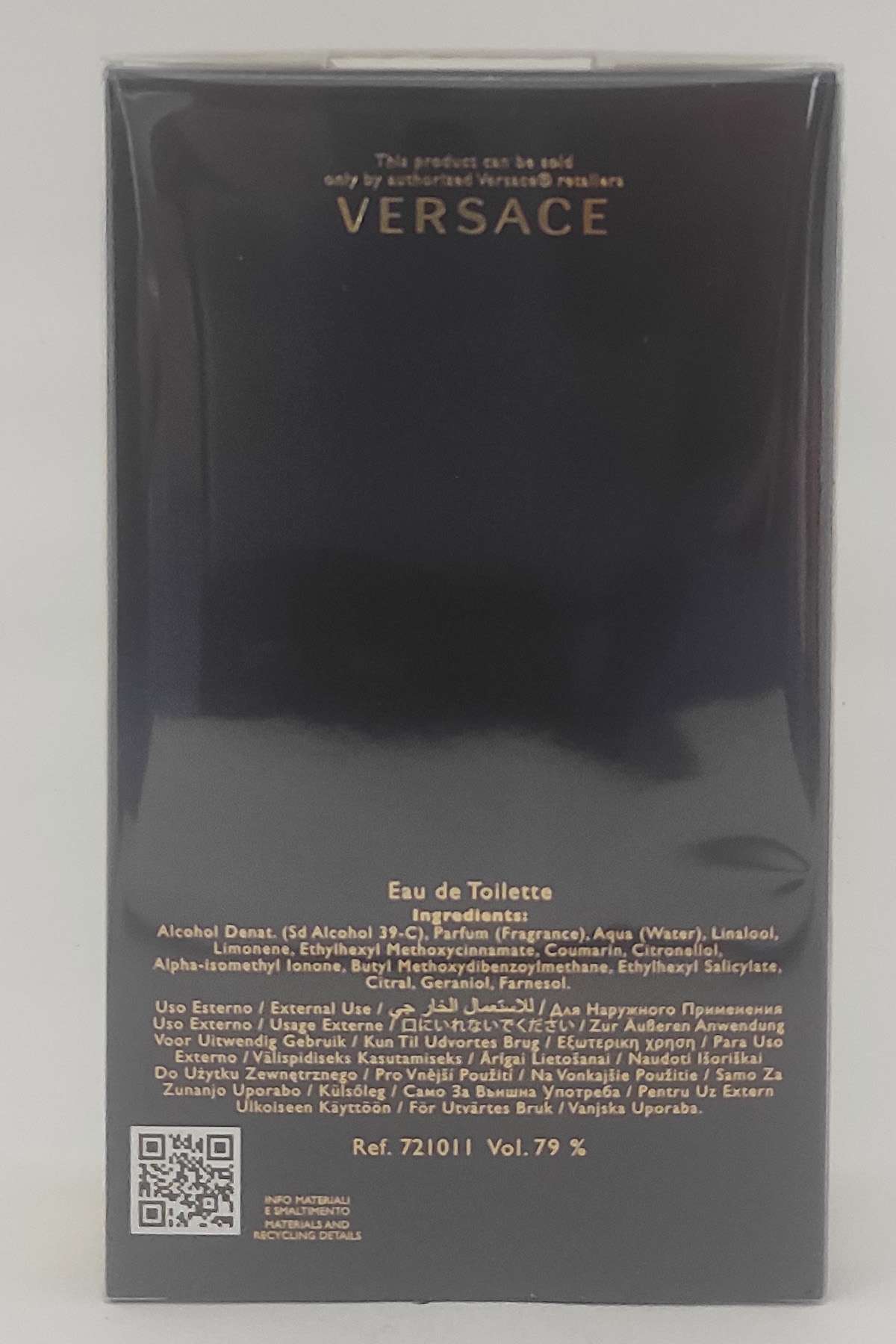Şişe tasarımı, Versace'nin lüks ve maskülen estetiğini yansıtır; derin mavi cam şişesi ve ortasındaki Medusa (Versace'nin ikonik amblemi) kabartmasıyla dikkat çeker. 200 ml boyutu, uzun süreli kullanım ve etkileyici bir sunum sağlar.
