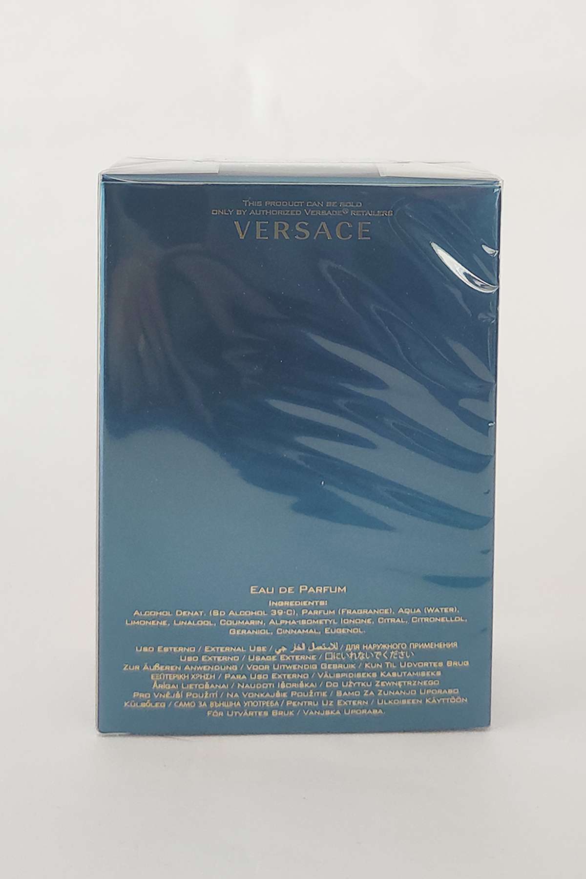Şişe tasarımı, Yunan mitolojisini yansıtan ikonik bir görünüme sahiptir; parlak cam, merkezi Medusa amblemi ve Grek desenli detaylarıyla lüks ve iddialı bir estetiğe sahiptir. EDP versiyonunda genellikle daha koyu mavi veya daha belirgin altın detaylar kullanılır.