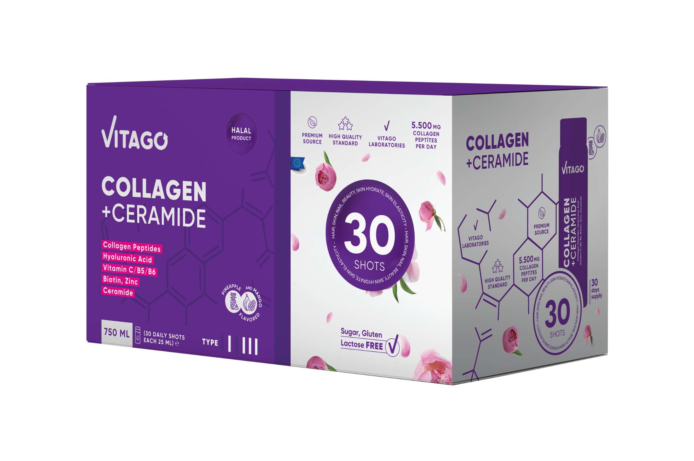 Vitago Kolajen Tip 1-3, Seramid, Vitamin ve Mineral İçeren Sıvı Takviye Edici Gıda 30x25 ml Shots Etken Maddeleri Nelerdir?