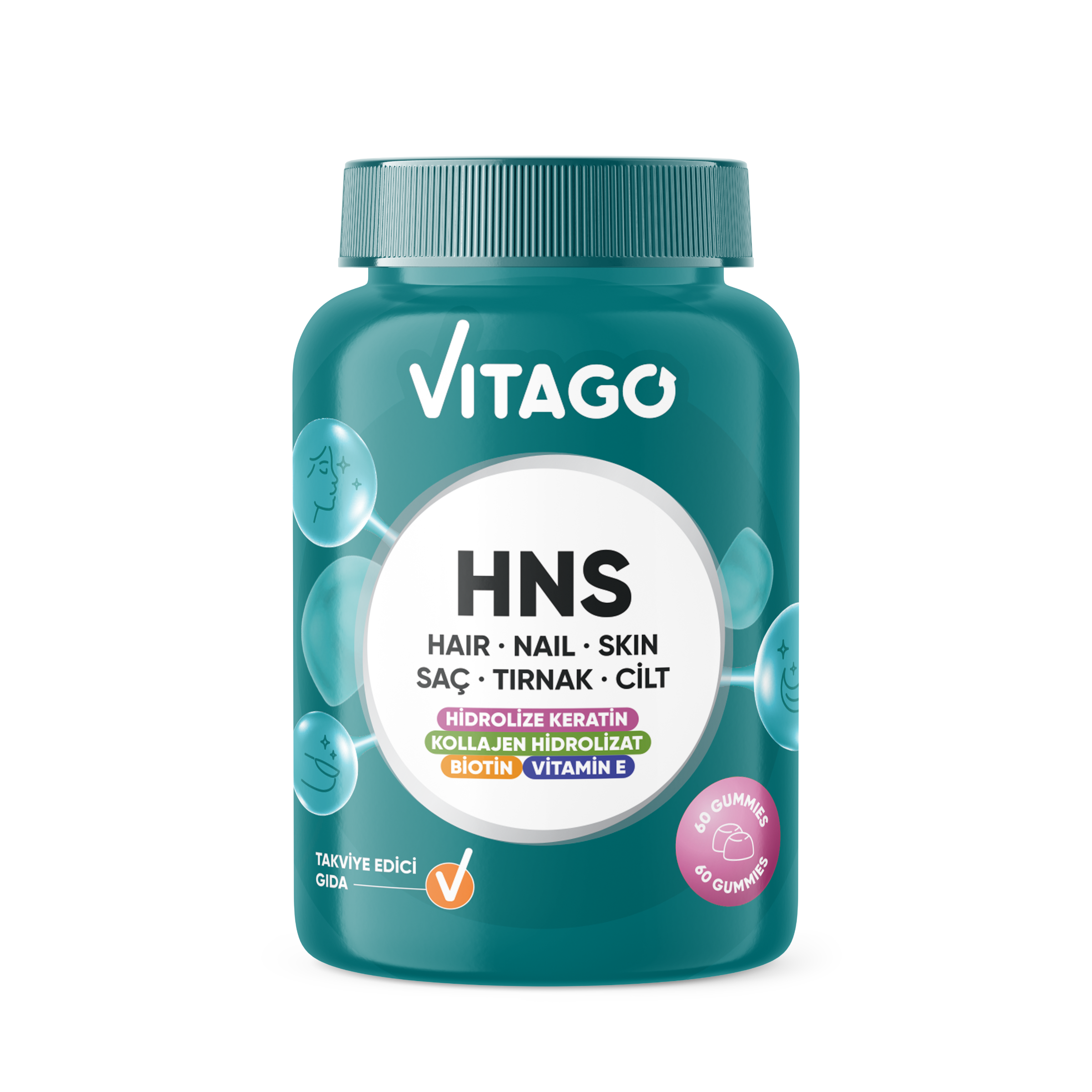 Vitago HNS Hair Nail Skin Biotin,Folik Asit,Vitamin E ve Hidrolize Keratin İçeren Çiğnenebilir Form Takviye Edici Gıda Etken Maddeleri Nelerdir?